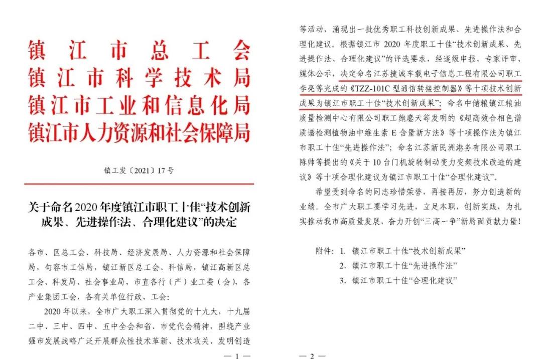 近日,該技術創新項目被鎮江市總工會、科學技術局、工業和信息化局與人力資源和社會保障局于授予鎮江市職工十佳“技術創新成果”獎。研發團隊表示:后續將珍惜榮譽、再接再厲,大力弘揚航天精神,同時要充分發揮引領和傳、幫、帶、教等作用,將個人的先進經驗轉化為群體的技能優勢,把在科研開發中遇到和解決的技術難題進行總結、研究,更好地發揮示范帶頭作用,為企業高發展作出更大貢獻!