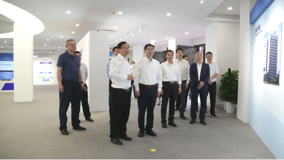劉著平一行參觀了航天通信展廳,詳細了解了航天通信發展歷程、業務板塊與產業發展情況。