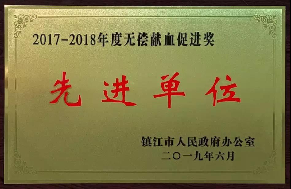 近日,江蘇省鎮江市人民政府召開了2019年無償獻血工作會議,會議總結了2017-2018年度全市義務獻血工作,表彰了2017-2018年度市無償獻血工作先進單位和先進個人。江蘇捷誠榮獲鎮江市2017-2018年度“無償獻血促進獎”先進單位。