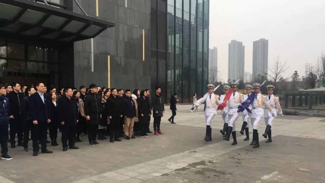 成都航天領導班子、干部職工代表等近百人參加了儀式。上午九時,在雄偉莊嚴的國歌聲中,鮮艷的五星紅旗冉冉升起,隨后伴隨著鏗鏘有力的航天科工之歌,航天科工司旗緩緩升起,參加儀式的全體干部職工整齊列隊,莊嚴肅立,面向三面飄蕩的旗幟行注目禮,伴隨著激昂的旋律,共同祝愿偉大的祖國更加繁榮昌盛!祝愿祖國的航天事業更加輝煌!