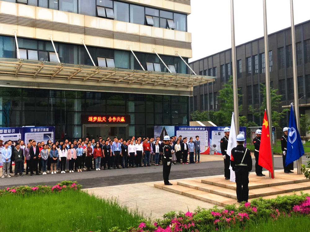 成都航天圍繞“逐夢航天 合作共贏”主題舉行升旗儀式。公司領(lǐng)導班子、中層干部、團員青年、職能部門全體人員以及部分事業(yè)部、制造部員工約300人英姿颯爽,整齊列隊。在激昂的國歌聲中,五星紅旗冉冉升起,在雄壯有力的《航天科工之歌》中,藍、白色的集團公司司旗隨風舞動,彰顯了我國航天事業(yè)的蒸蒸日上。